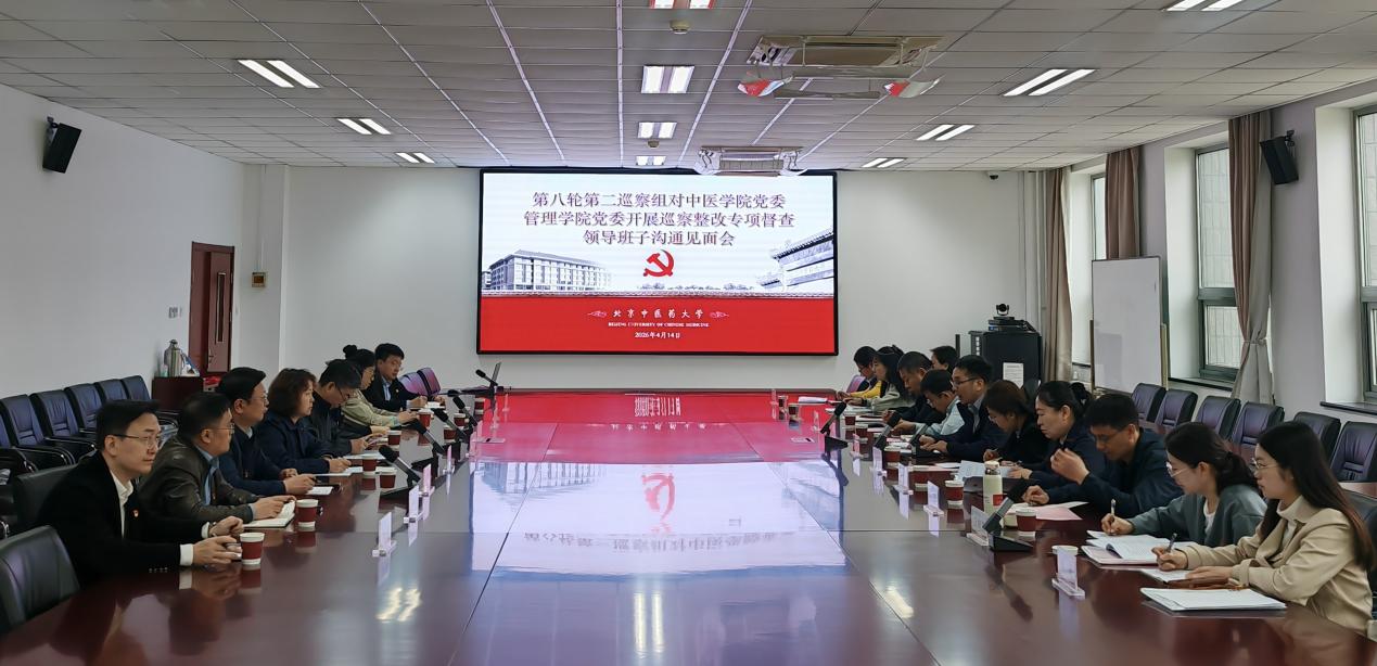 第二巡察组对中医学院党委、管理学院党委巡察整改落实情况开展专项督查,紧扣两学院巡察整改方案及整改进展情况,重点核查整改任务落实推进、整改责任履行、制度建设执行、整改成效满意度及事业发展促进情况,并重点关注学院教育、科技、人才一体化统筹推进情况。4月14日上午,第二巡察组召开了与中医学院党委、管理学院党委领导班子沟通见面会,随后进驻开展工作。