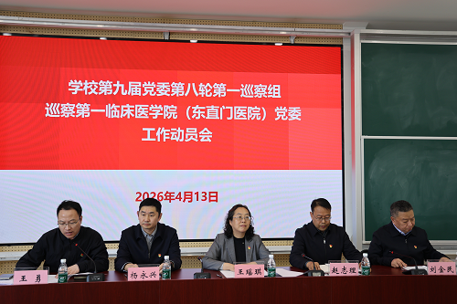 本轮巡察分工明确、靶向精准。第一巡察组对第一临床医学院(东直门医院)党委开展常规巡察,紧紧围绕“四个落实”监督重点,突出政治担当、管党治党、组织路线、整改成效“四查”重点,同步对医药领域腐败问题集中整治开展“回头看”巡察,对殡葬领域腐败问题专项整治开展机动式巡察。4月13日下午,第一巡察组进驻第一临床医学院(东直门医院)并召开进驻动员会,巡察工作领导小组组长、校党委书记王瑶琪出席会议并讲话。